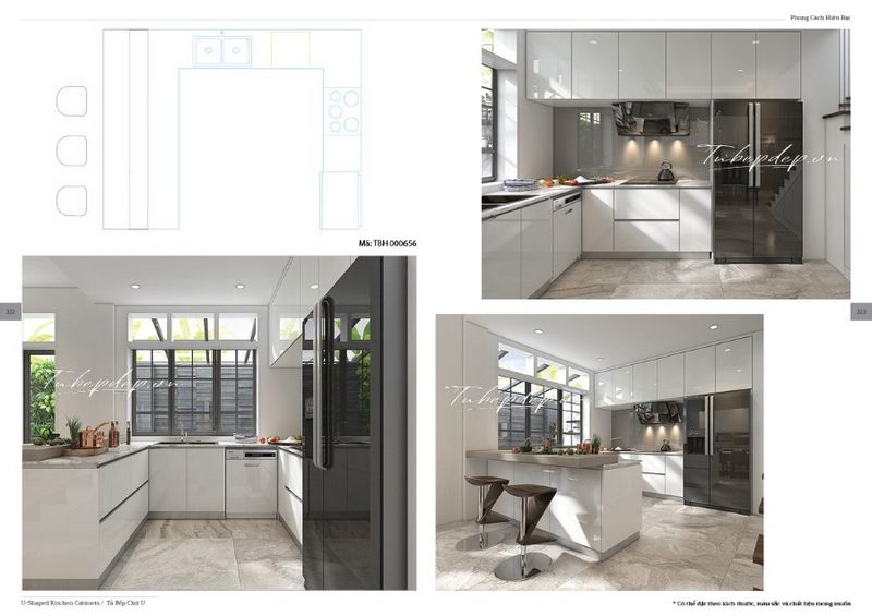 . Tủ bếp chữ L được thiết kế để phù hợp với cả phần bếp nấu và khu vực xơ chế rửa thực phẩm, giúp cho việc nấu nướng và dọn dẹp trở nên dễ dàng hơn.